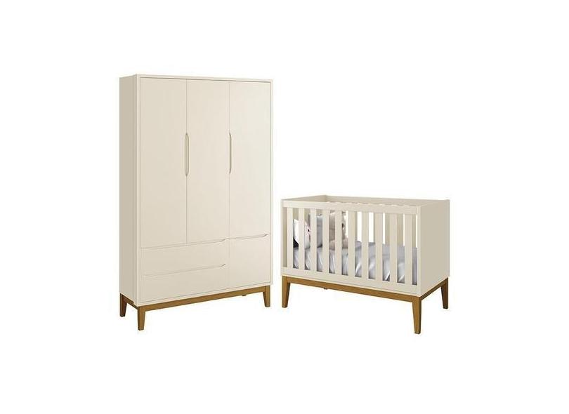 Jogo De Quarto Infantil Guarda Roupa 3 Portas E Berço Classic Com Pés