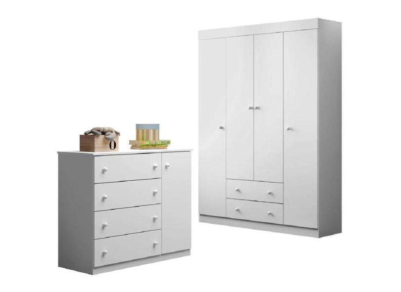 Jogo De Quarto Infantil Guarda Roupa E Cômoda Elisa Branco - Phoenix