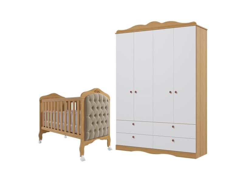 Jogo de Quarto Infantil Guarda Roupa Encanto e Berço Harmonia com Capitonê - Permóbili Baby