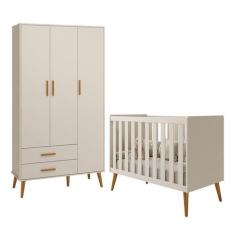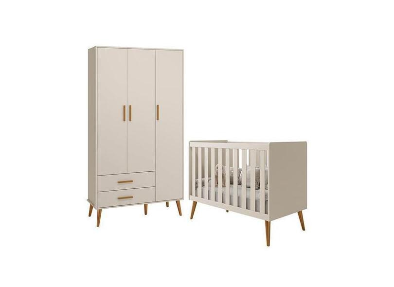 Jogo De Quarto Infantil Isis Guarda Roupa 3 Portas E Berço Areia - Rel