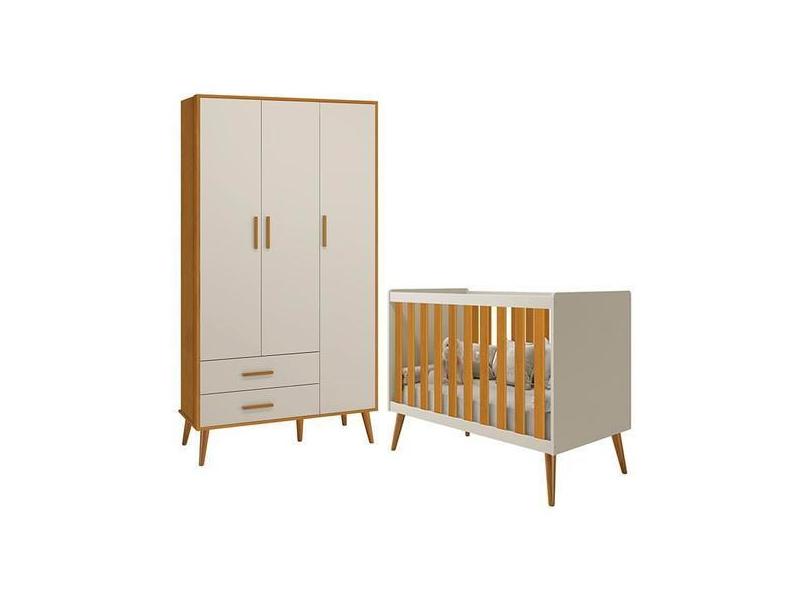 Jogo de Quarto Infantil Isis Guarda Roupa 3 Portas e Berço Areia/Savan