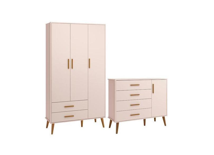 Jogo De Quarto Infantil Isis Guarda Roupa 3 Portas E Cômoda 1 Porta Ro