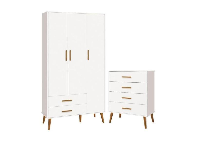 Jogo De Quarto Infantil Isis Guarda Roupa 3 Portas E Cômoda 4 Gavetas Branco - Reller Móveis Branco