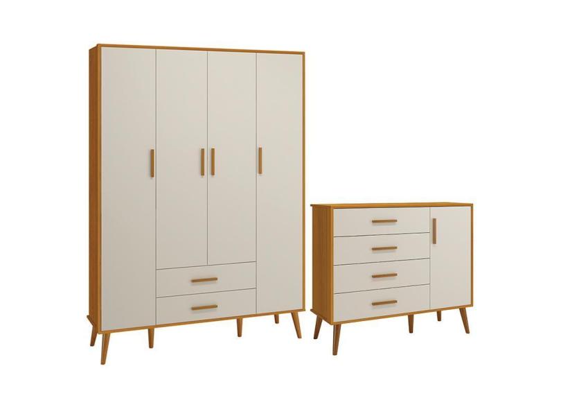 Jogo De Quarto Infantil Isis Guarda Roupa 4 Portas E Cômoda 1 Porta Areia/Savana - Reller Móveis