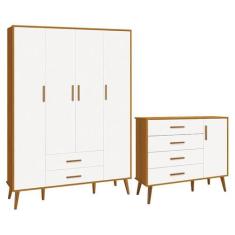 Jogo de Quarto Infantil Isis Guarda Roupa 4 Portas e Cômoda 1 Porta - Reller Móveis Branco