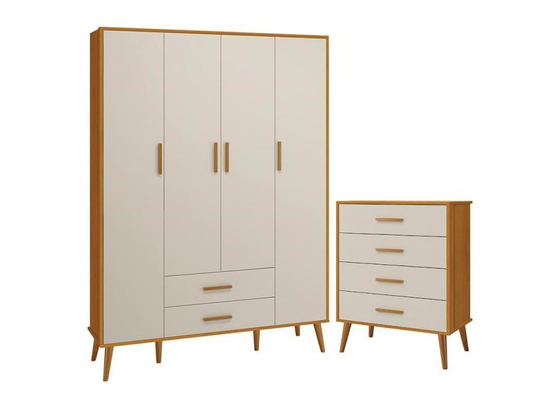 Jogo De Quarto Infantil Isis Guarda Roupa 4 Portas E Cômoda 4 Gavetas Areia/Savana - Reller Móveis