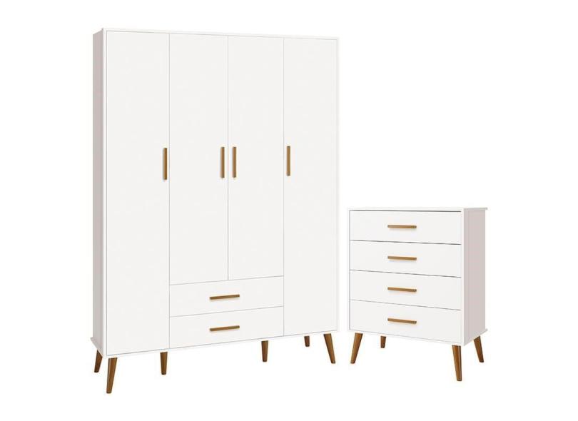 O menor preço encontrado no Brasil para Jogo de Quarto Infantil Isis Guarda Roupa 4 Portas e Cômoda 4 Gavetas - Reller Móveis Branco atualmente é R$ 1.640,50.
