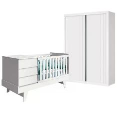 Jogo de Quarto Infantil Prince com Guarda Roupa e Berço Multifuncional - Reller Móveis