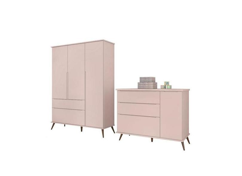 Jogo De Quarto Infantil Retrô Melinda Guarda Roupa E Cômoda Com Porta