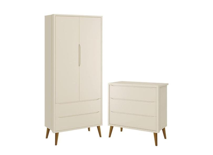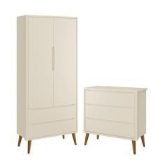 Jogo de Quarto Infantil Theo Retrô Guarda Roupa 2 Portas e Cômoda com Pés Amadeirado - Reller Móveis
