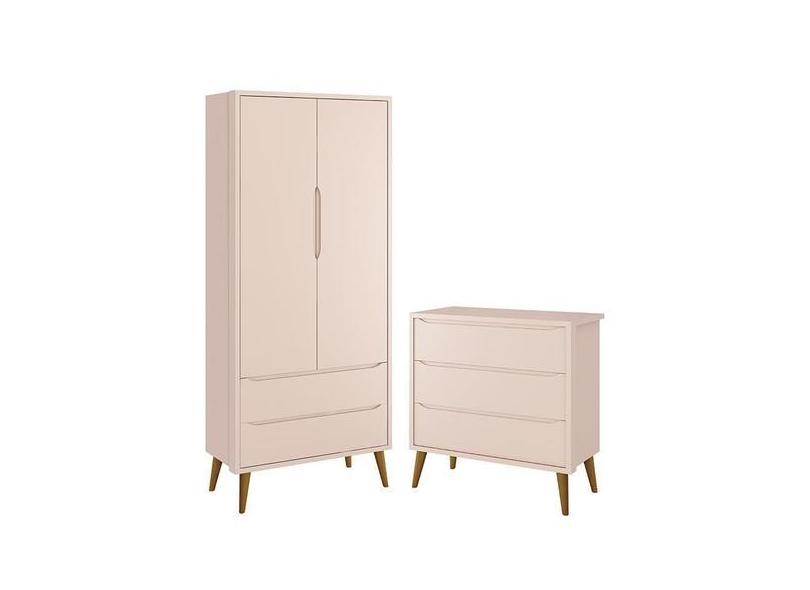 Jogo De Quarto Infantil Theo Retrô Guarda Roupa 2 Portas E Cômoda Rosa