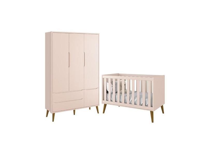 Jogo De Quarto Infantil Theo Retrô Guarda Roupa 3 Portas E Berço Rosa