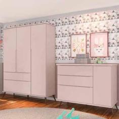 Jogo De Quarto Melinda Rosê 100 % Mdf Guarda Roupa 3 Portas E 2 Gaveta