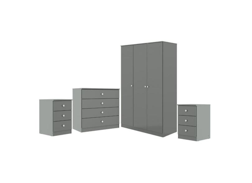 Jogo para Quarto Solteiro com Guarda Roupa Gaveteiro Mesa de Cabeceira Cinza