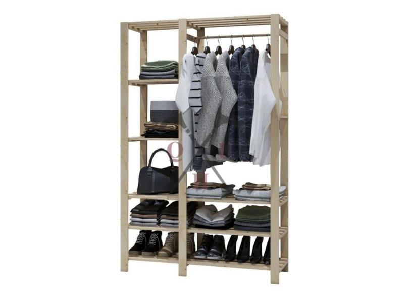 Kit Estante Organizar 100% Pinus Cadernos Estilo Bancada Minimalista E Arara Guarda Roupa E Calçados