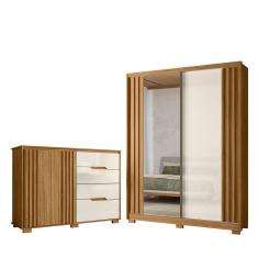 Kit Guarda Roupa C/ Espelho 2 Portas Cannes E Cômoda Sapateira Munique M01 Freijó Clique Chique