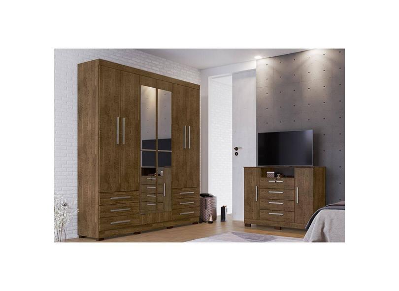 O menor preço encontrado no Brasil para Kit Guarda Roupa Casal 6 Portas com Espelho e Cômoda 2 Portas Viena I01 - Clique Chique Móveis atualmente é R$ 1.737,91.