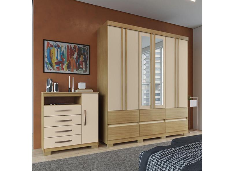 O menor preço encontrado no Brasil para Kit Guarda Roupa Casal Arizona 6 Portas com Espelho e Cômoda 1 Porta e 4 Gavetas Aspen I01 Carvalho Off White - Clique Chique Móveis atualmente é R$ 1.685,71.
