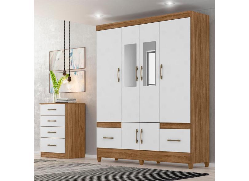Kit Guarda Roupa Casal com Espelho MS 912 + Cômoda MS 913 Naturale / Branco - Moval
