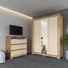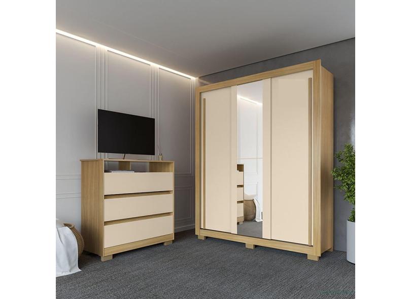 O menor preço encontrado no Brasil para Kit Guarda Roupa Casal Dallas 3 Portas 2 Gavetas com Espelho e Cômoda Austin 3 Gavetas I01 Carvalho Off White - Clique Chique Móveis atualmente é R$ 1.085,19.