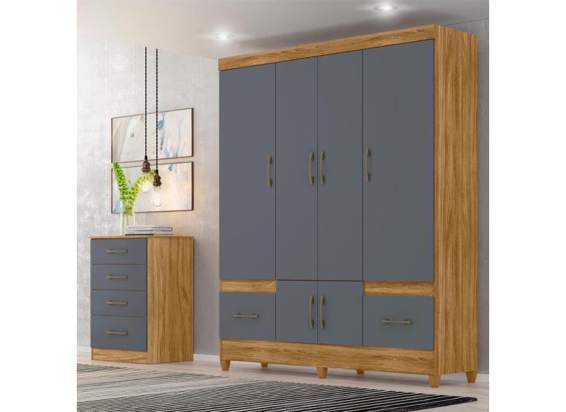 Kit Guarda Roupa Casal Ms 912 + Cômoda Ms 913 - Freijó / Cinza Freijó / Cinza