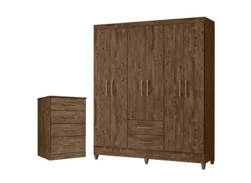 Kit Guarda Roupa Casal Panamá E Cômoda Ms - Castanho Wood Castanho Wood