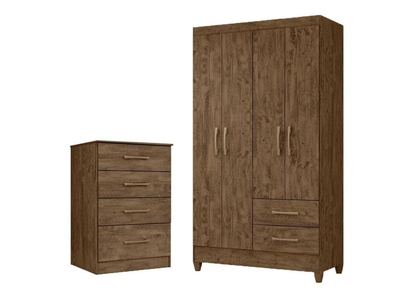 Kit Guarda Roupa Solteiro Chile E Cômoda Ms - Castanho Wood Castanho Wood