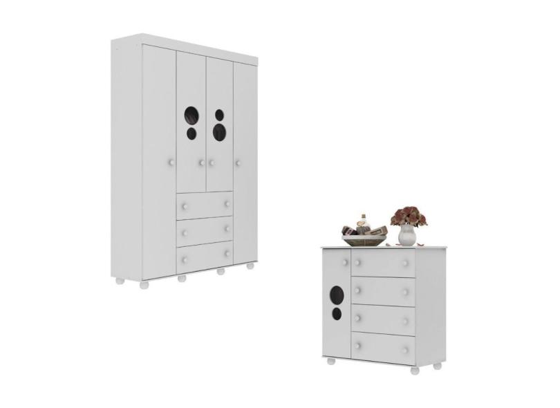 Kit Guarda-Roupas Infantil 4 Portas 3 Gavetas e Cômoda 1 Porta 4 Gavetas Pimpolho Multimóveis MP4209