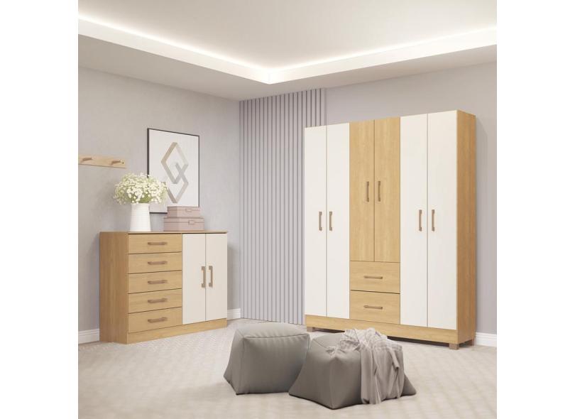 Kit Quarto Casal Completo com Guarda Roupa Cômoda Carvalho