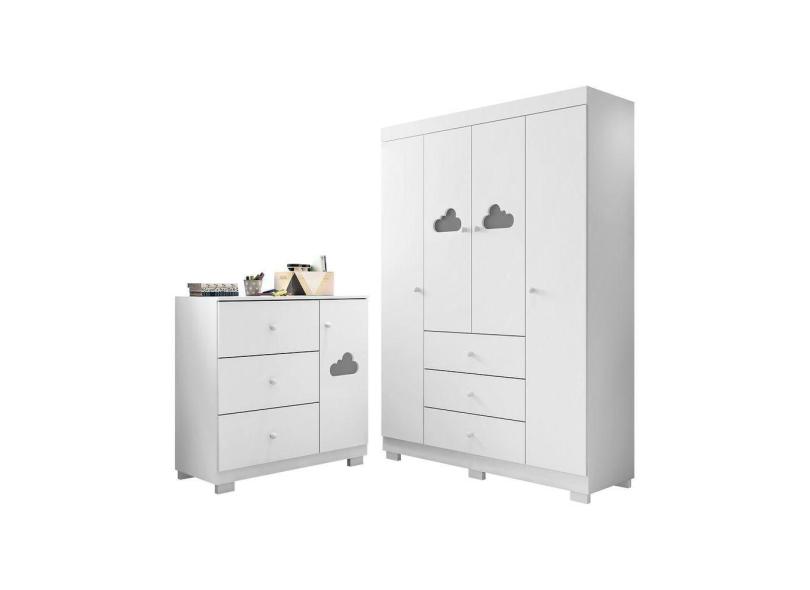 O menor preço encontrado no Brasil para Kit Quarto Infantil Bebê Ane Detalhe Nuvem Cômoda 3 Gavetas E Guarda Roupa 4 Portas 3 Gavetas Bco - Phoenix Baby atualmente é R$ 1.253,27.