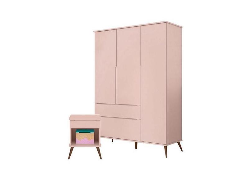 Mesa De Apoio E Guarda Roupa Infantil Alice Rosa Acetinado - Phoenix B