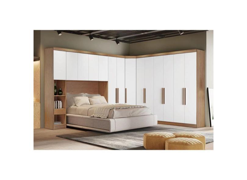 Modulado de Quarto Rizon 5 Peças (1 Armário Ponte + 1 Closet + 2 Guarda Roupas + 1 Complemento) QC204 Freijo Cumaru c/ Fendi - Novo Horizonte