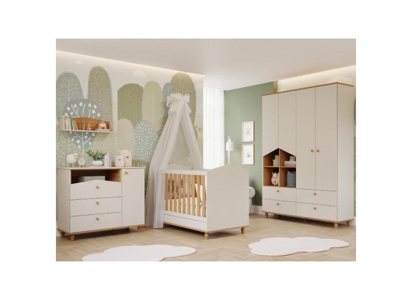 Quarto bebê Completo Berço Americano 3 em 1 Guarda roupas 4 Portas Cômoda 1 Porta 100% MDF