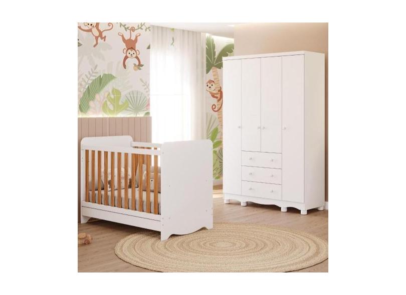 Quarto Bebê Completo Berço Americano Bem 3 Em 1 Guarda Roupas 4 Portas
