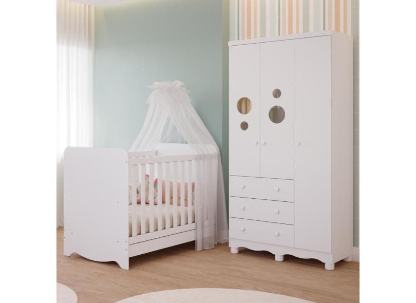 Quarto Bebê Completo Berço Americano Ben 3 em 1 Guarda Roupas 3 Portas 3 Gavetas Bolinha 100% MDF