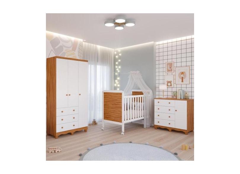 Quarto Bebê Completo Berço Americano Cloe 2 Em 1 Guarda Roupas 3 Porta