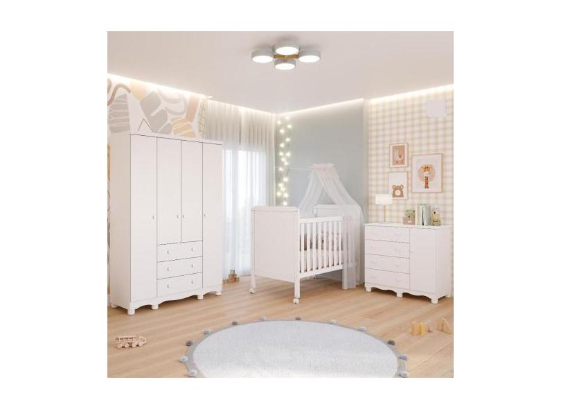 O menor preço encontrado no Brasil para Quarto Bebê Completo Berço Americano Cloe 2 Em 1 Guarda Roupas 4 Porta atualmente é R$ 1.515,46.