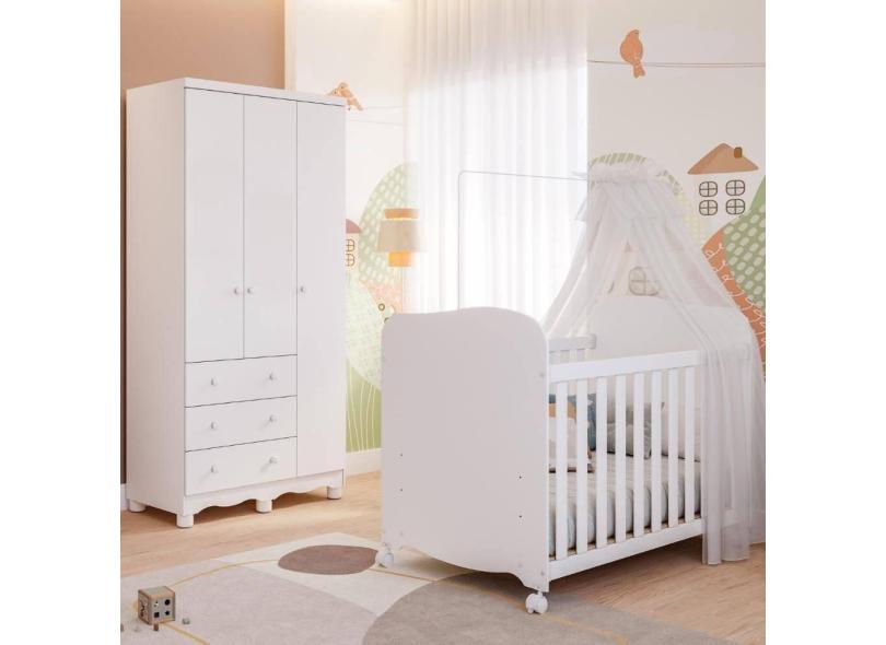 Quarto Bebê Completo Berço Americano Uli Guarda Roupa 3 Portas 3 Gavetas Junior 100% MDF