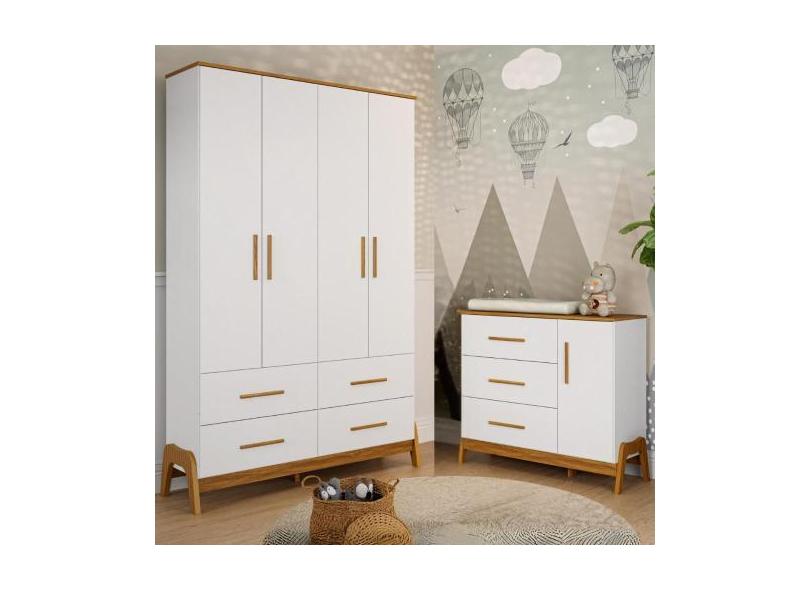 Quarto Bebê Completo Guarda Roupas Cômoda 1 Porta 100% Mdf - Peroba