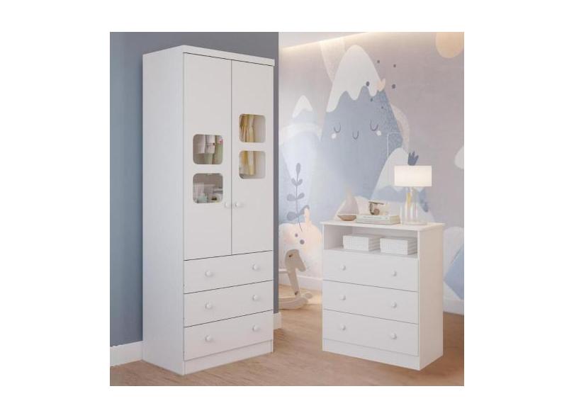 Quarto Bebe Completo Guarda Roupas Uli 2 Portas Gaveteiro 3 Gavetas Sm
