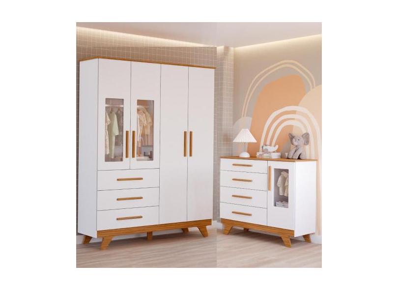 Quarto Bebê Retrô Janelado Completo Guarda Roupa 4 Portas 3 Gavetas Cô