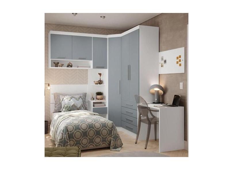 Quarto Canto Solteiro Guarda-roupas, Cabeceira, Escrivaninha - LUCIANE