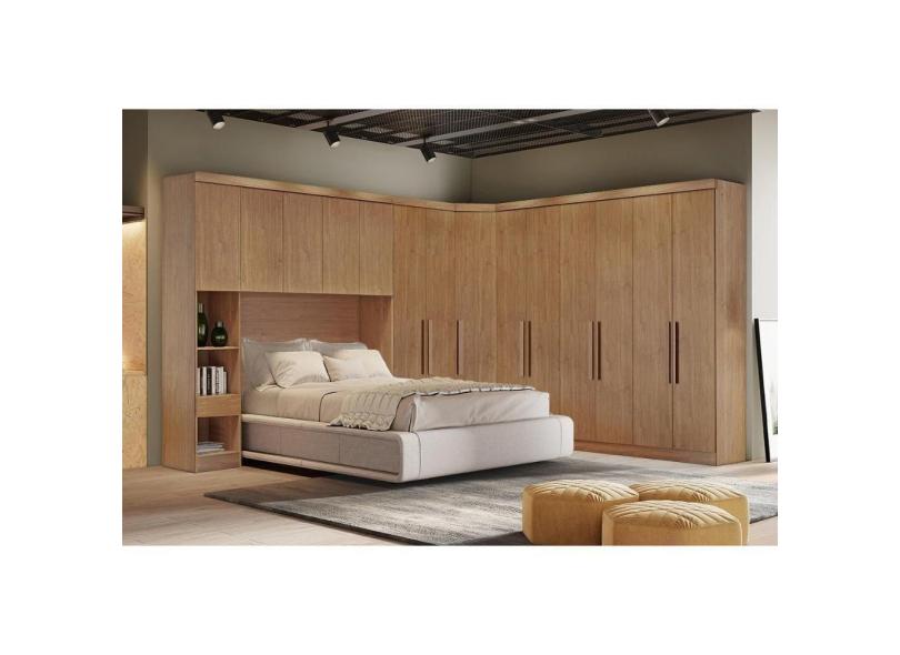 Quarto Casal (1 Armário Ponte + 1 Closet + 2 Guarda Roupas + 1 Complemento) Qc204 Freijo Cumaru