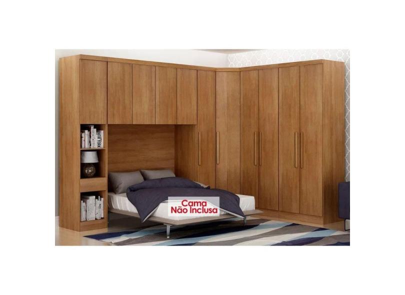 Quarto Casal Completo Rizon/Linea 6 Peças (1 Armário Aéreo + 3 Guarda Roupas + 1 Closet Canto Obliquo + 1 Complemento) QCM109 Cumaru - Novo Horizonte