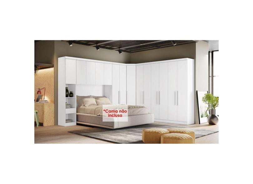 Quarto Casal Modulado 5 Peças (1 Armário Ponte1 Closet2 Guarda Roupas1 Complemento) Branco