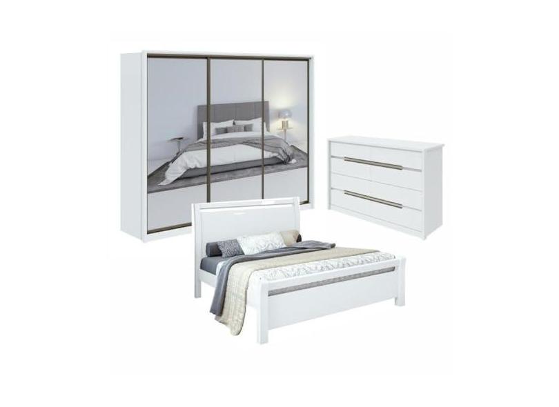 O menor preço encontrado no Brasil para Quarto com Guarda-roupa 3 Espelhos 3 Portas 6 Gavetas, Cômoda Urban 8 Gavetas e Cama Reali Branco atualmente é R$ 4.549,93.