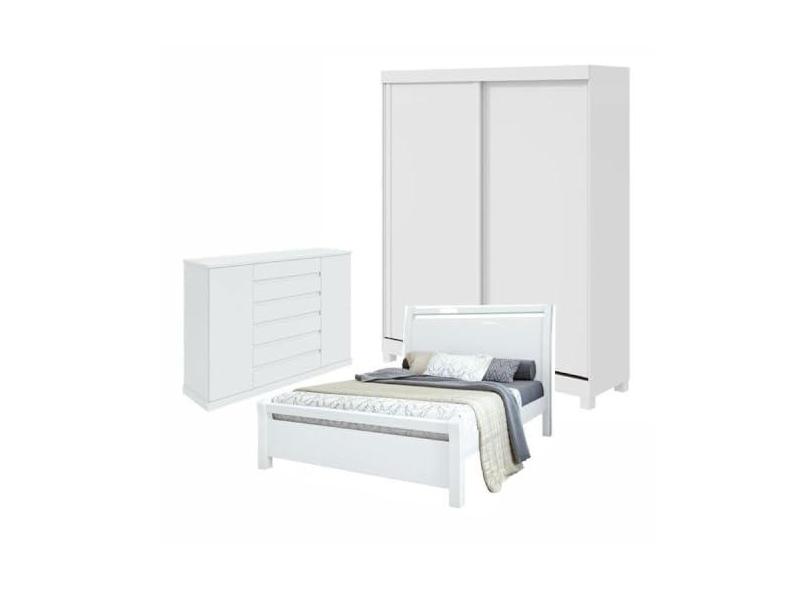 Quarto com Guarda-roupa Casal 2 Portas 2 Gavetas, Cômoda 2 Portas 7 Gavetas e Cama Reali Branco