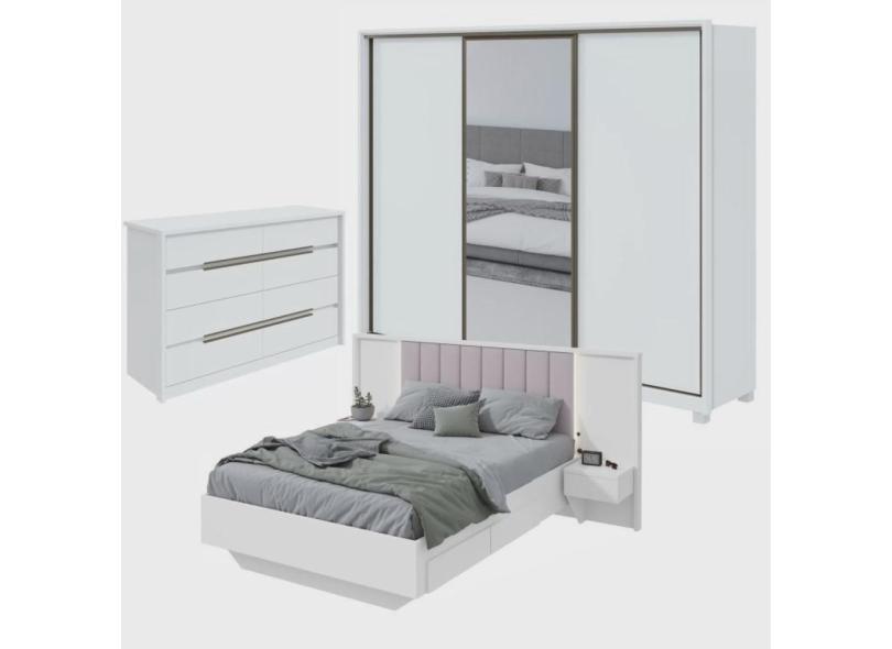 O menor preço encontrado no Brasil para Quarto com Guarda-Roupa com Espelho 3 Portas 6 Gavetas, Cômoda Urban 8 Gavetas e Cama Solaris atualmente é R$ 4.499,85.