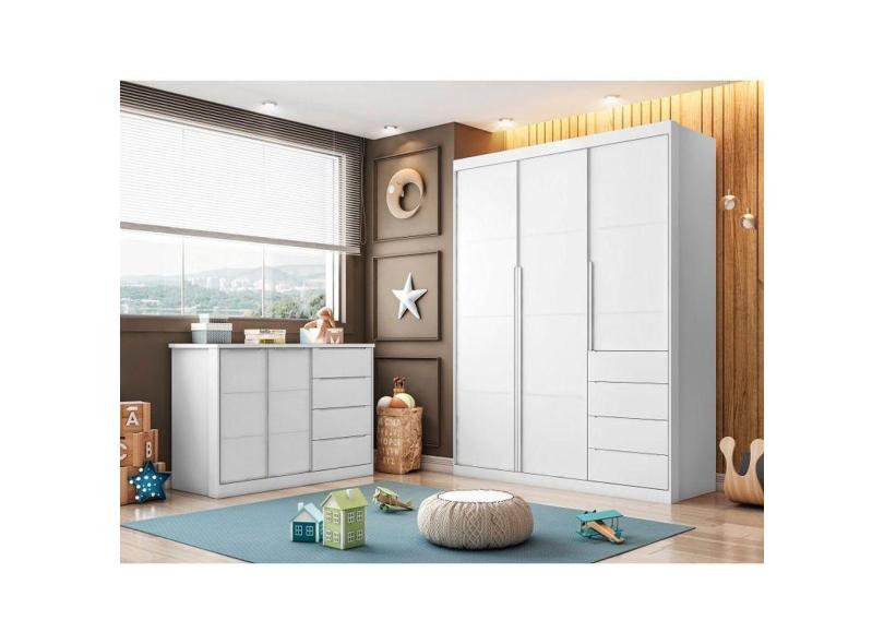 Quarto completo com Guarda Roupa 3 Portas e 4 Gavetas + Cômoda 2 Portas e 4 Gavetas Pérola Branco - Phoenix Baby