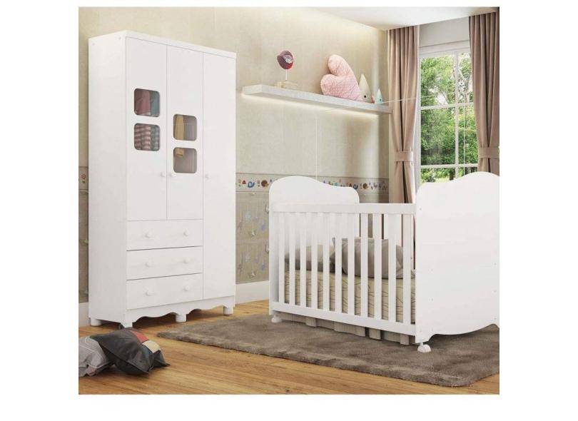 O menor preço encontrado no Brasil para Quarto de Bebê Berço Americano e Guarda Roupa 3 Portas 3 Gavetas Uli Móveis Peroba Branco atualmente é R$ 1.077,69.